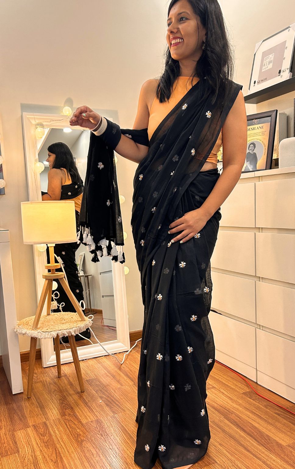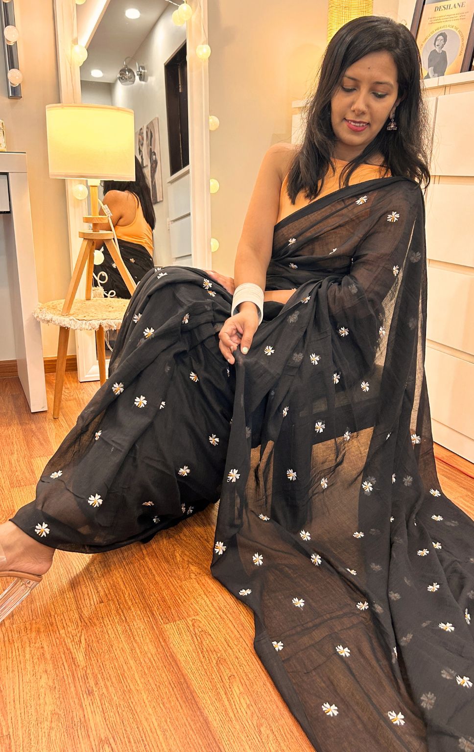 Discover timeless elegance with our exquisite Floral mul cotton saree, adorned with delicate floral motifs. Crafted from the finest mul cotton, this saree offers a perfect blend of comfort and style, draping gracefully with a soft touch against the skin.