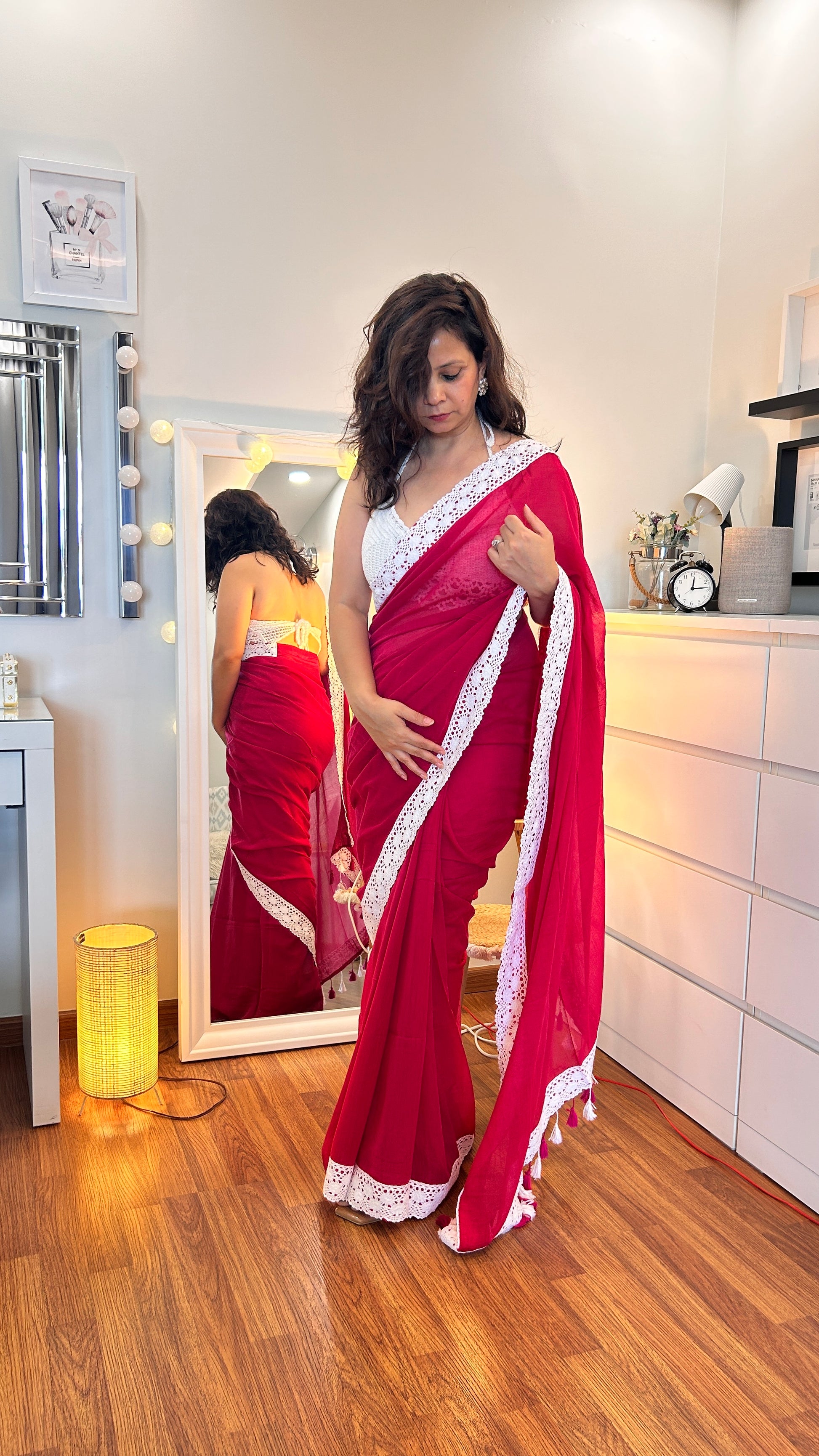The saree measures 5.5 meters in length and does not include a blouse piece.