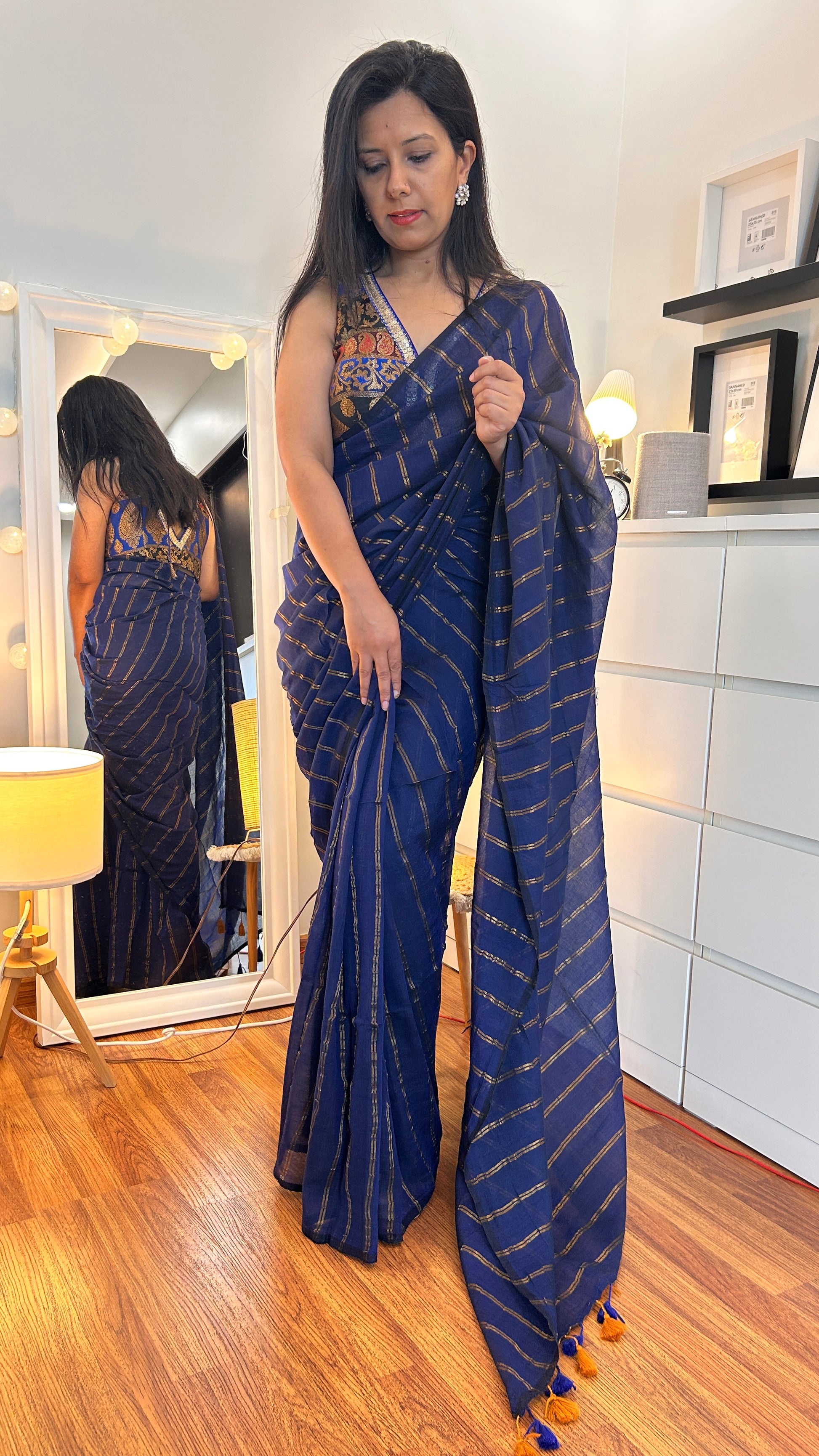 The saree measures 5.5 meters in length and does not include a blouse piece.