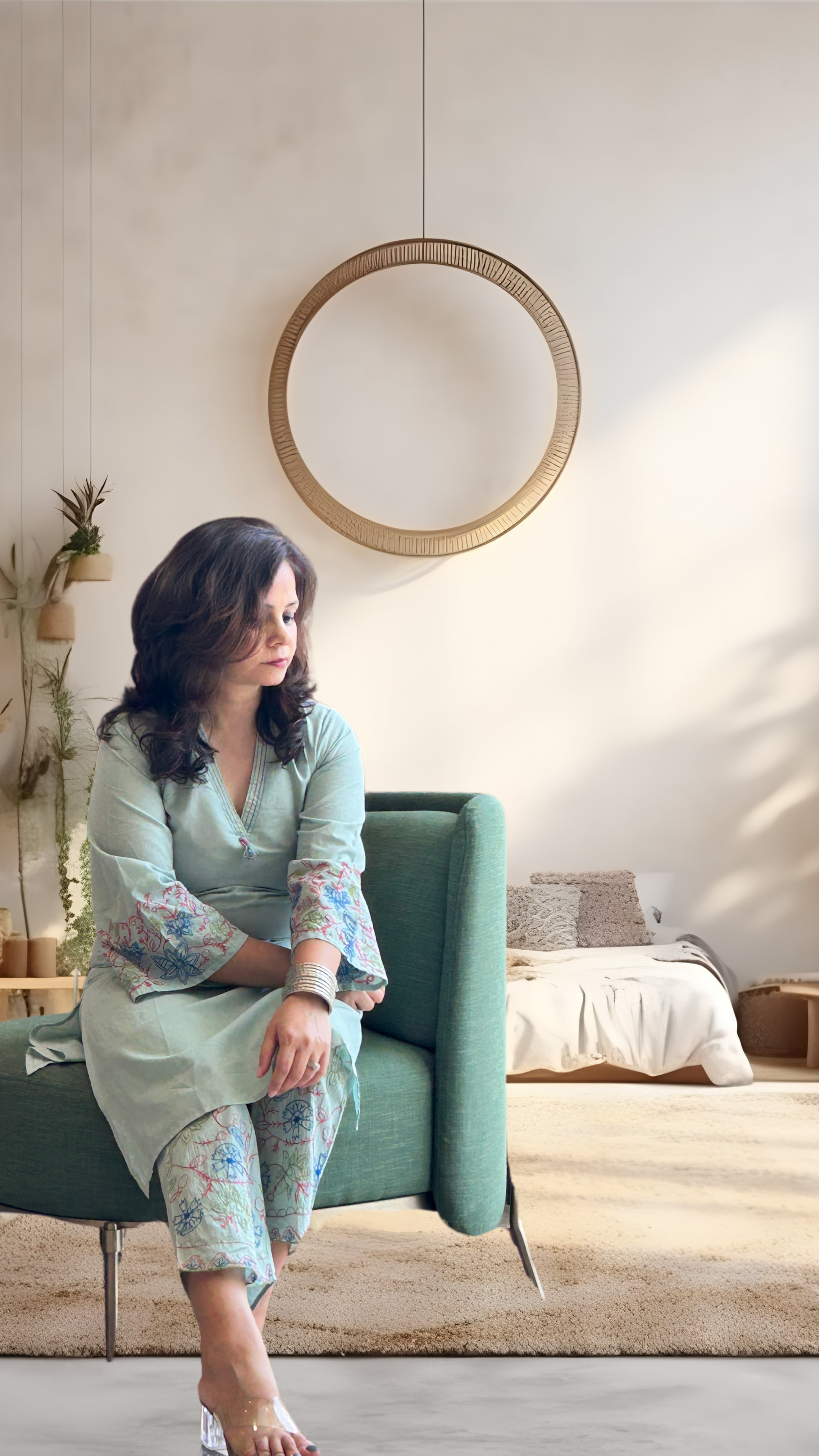 This ice blue kurta set is adorned with multicolor embroidery on the sleeves and pants — a refreshing blend of softness and playful elegance. Perfect for breezy, cheerful vibes!